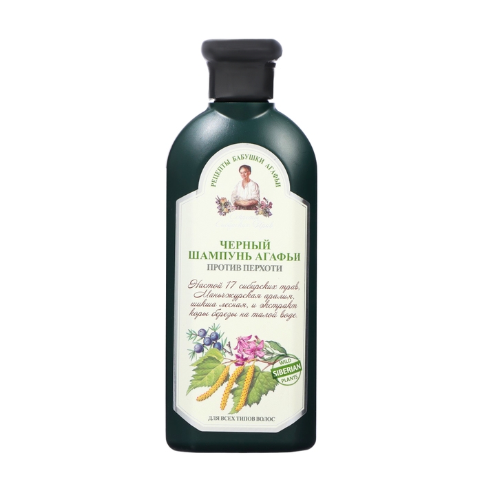 Черный шампунь Агафьи против перхоти создан на настое 17 сибирских трав и сухого чернокорня на талой воде с добавлением ягоды шикши лесной и березового дегтя. Березовый деготь славится своим чудным действием на кожу головы, предотвращая появление перхоти. Чернокорень улучшает кровообращение, а шикша питает волосы. Настой трав сибирских на талой воде успокоит кожу головы, избавит от перхоти и укрепит волосы.