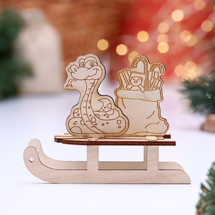 Сувенир символ года санки "Змея с мешком подарков", вид 6, 9,8 х 4,7 х 7,7 см