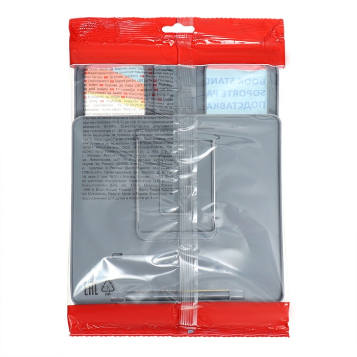 Пластиковая складная подставка с фиксатором для книг. Позволяет расположить книгу под удобным углом наклона (7 углов), тем самым положительно влияя на осанку и зрение ребенка. Держатель, расположенный в нижней части, надежно фиксирует страницы. Ширина подставки — 235мм, высота спинки — 190мм.
