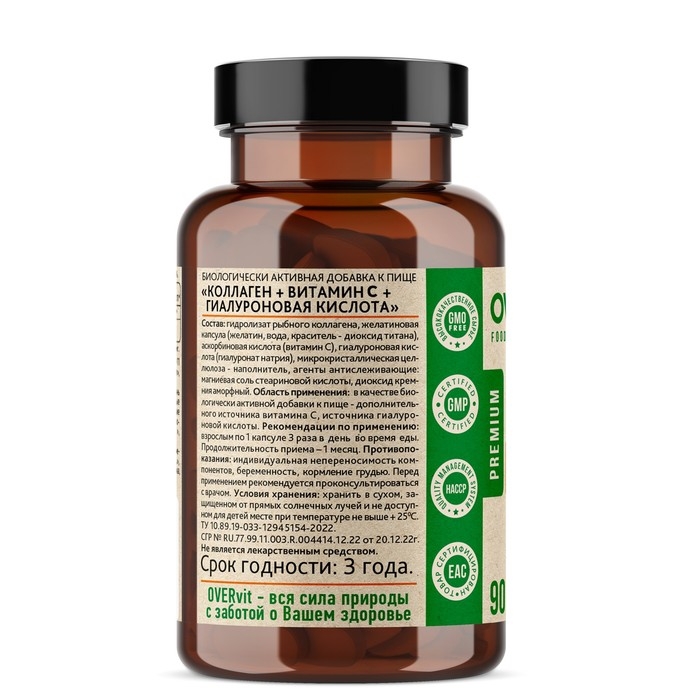 Коллаген+Витамин С+Гиалуроновая кислота OVERvit, 90 капсул