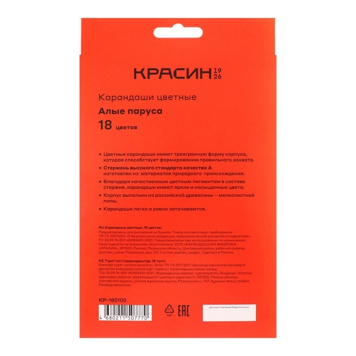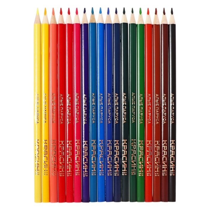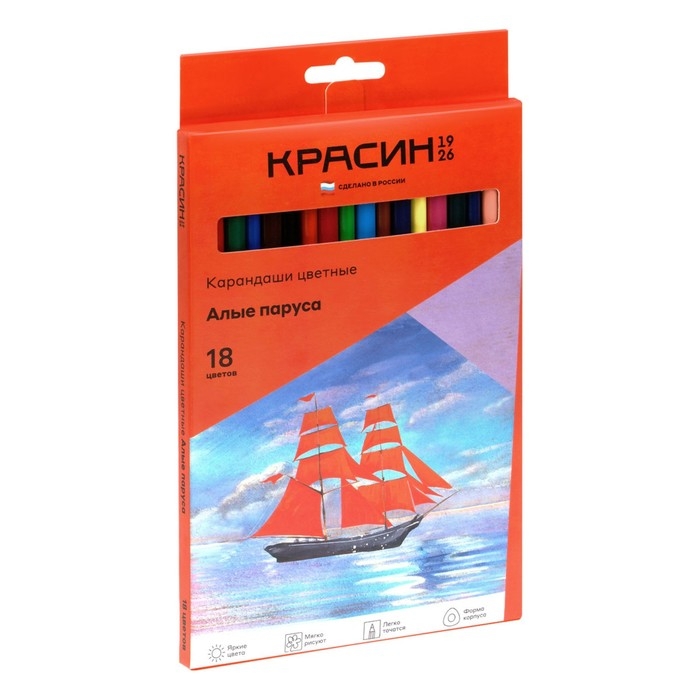 Набор карандашей цветных Красин "Алые Паруса" , трёхгранные, заточенные, европодвес, 18 штук