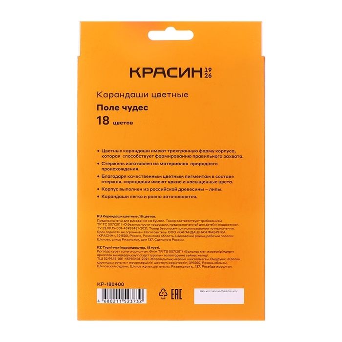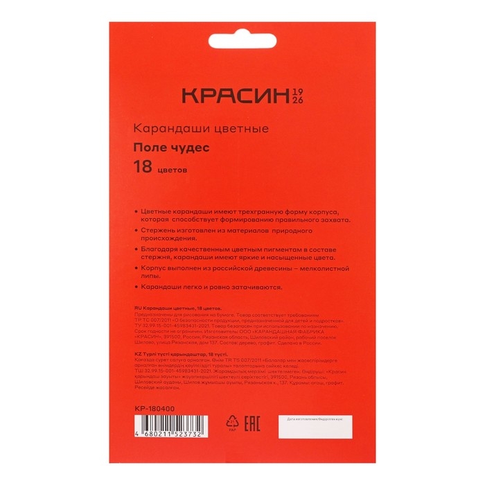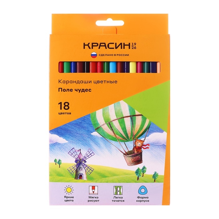 Набор карандашей цветных Красин "Поле чудес", шестигранные, заточенные, европодвес, 18 штук