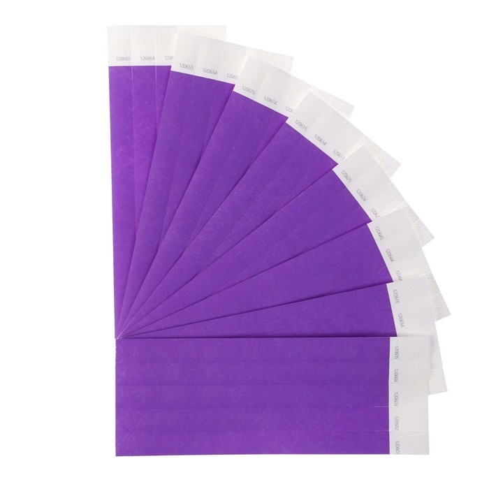 Бумажный контрольный браслет "Фиолетовый" TYVEK 100 штук