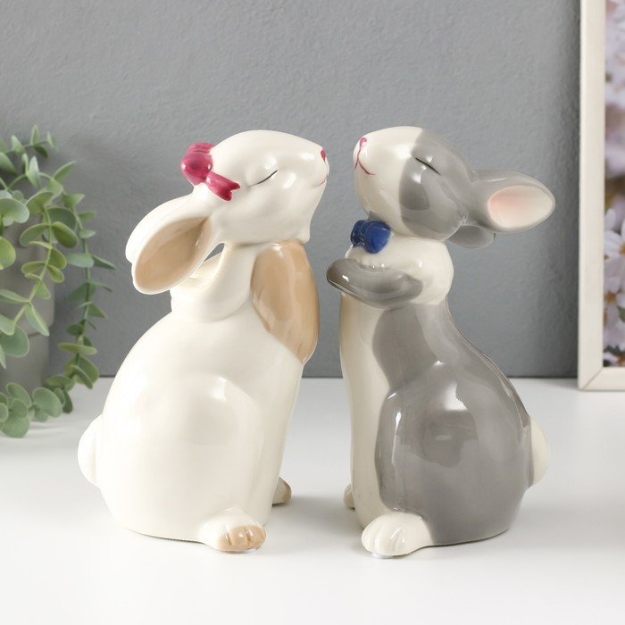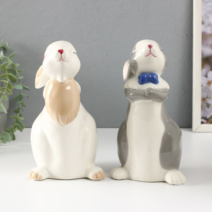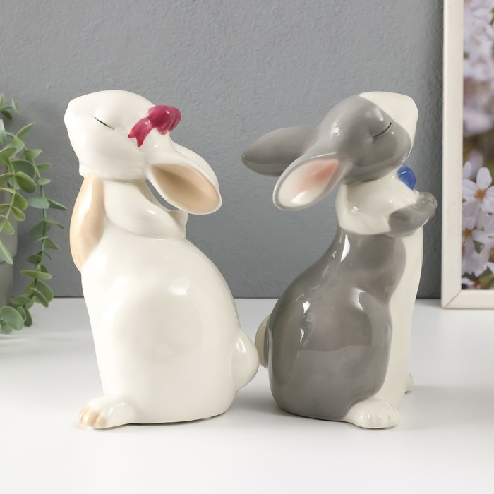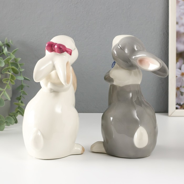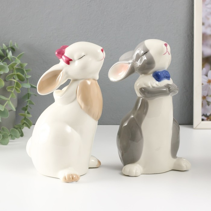 Сувенир керамика "Кролики милашки" белые МИКС 20х10х10,5 см