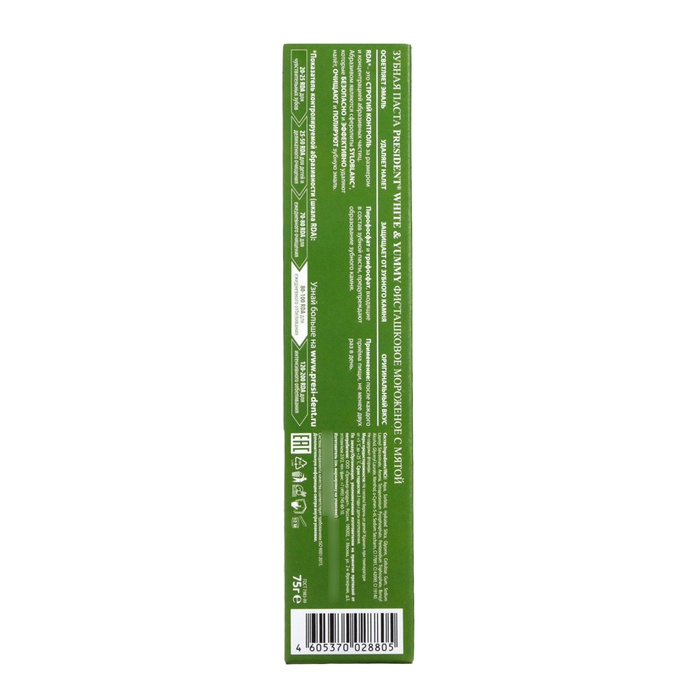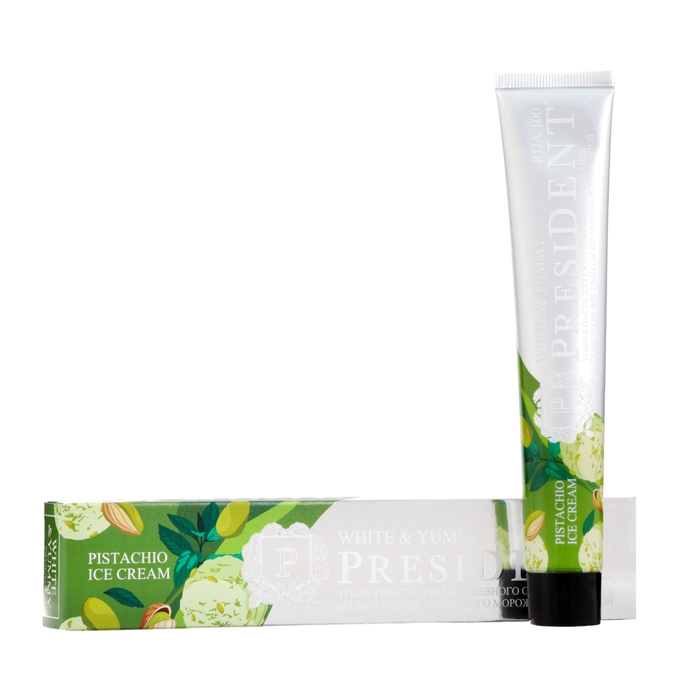 Зубная паста PRESIDENT, 100 RDA, White & Yummy, Фисташковое мороженое с мятой, 75 г