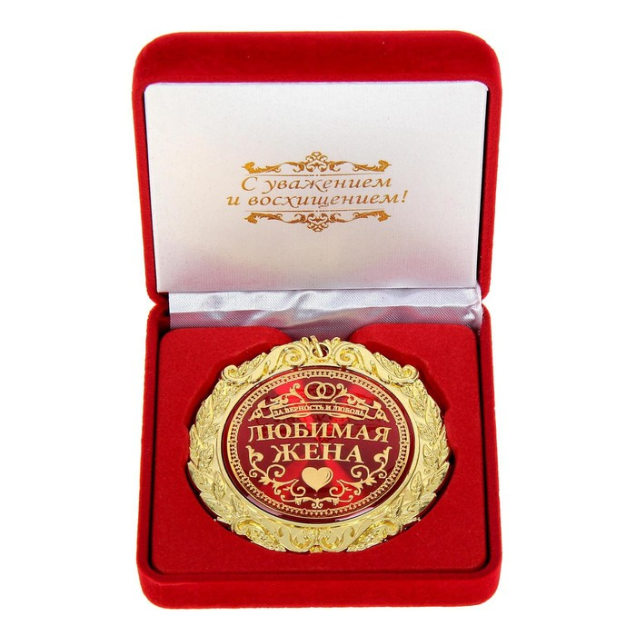 Медаль в бархатной коробке «Любимая жена», d= 7 см.