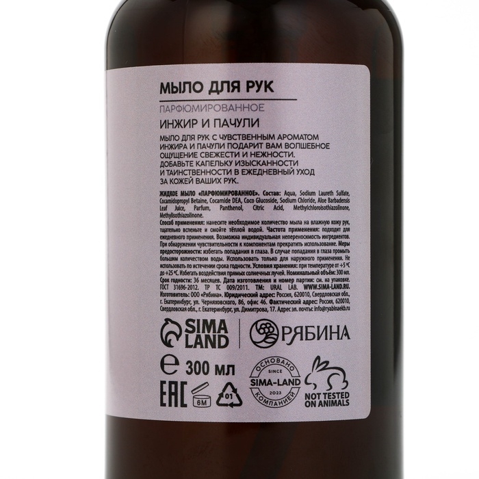 Мыло для рук жидкое URAL LAB, 300 мл, аромат инжира и пачули