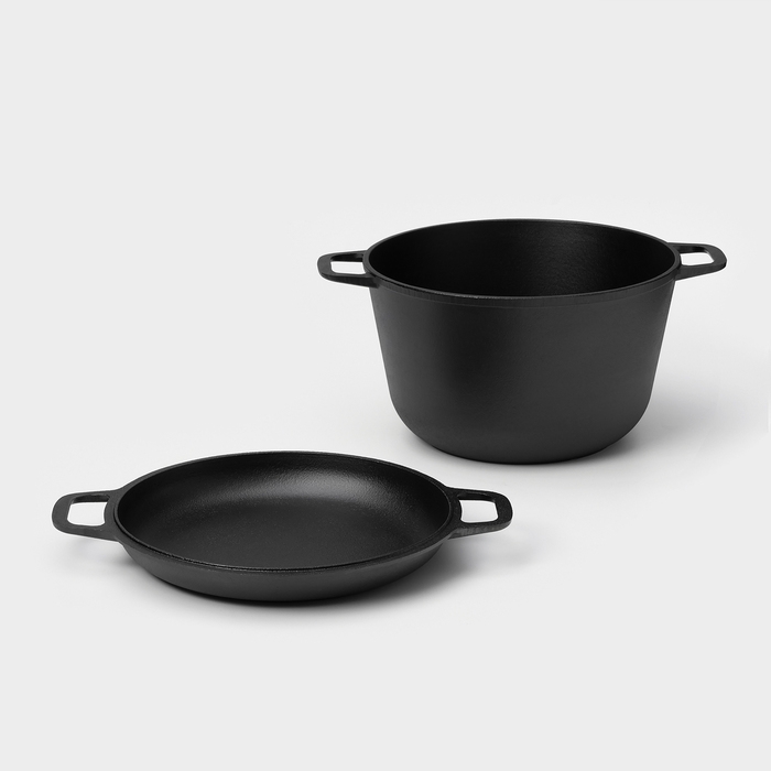 Кастрюля чугунная Wild Kitchen, 6 л, с крышкой-сковородой d=26 см