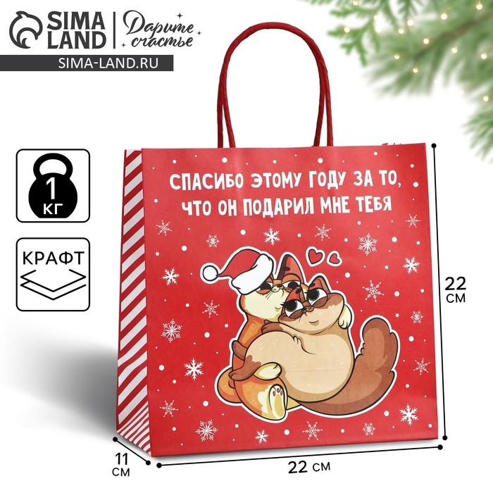 Пакет подарочный новогодний «Спасибо этому году», 22 х 22 х 11 см