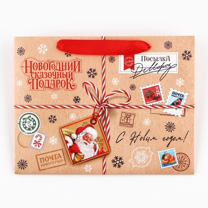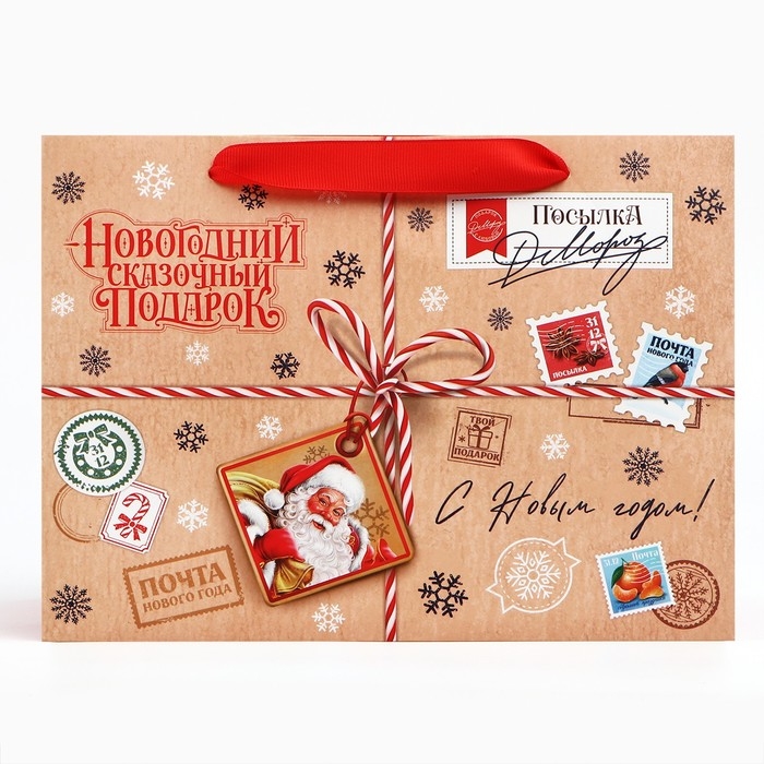 Пакет подарочный новогодний с широким дном «Сказочный подарок», 25 х 19 х 18 см