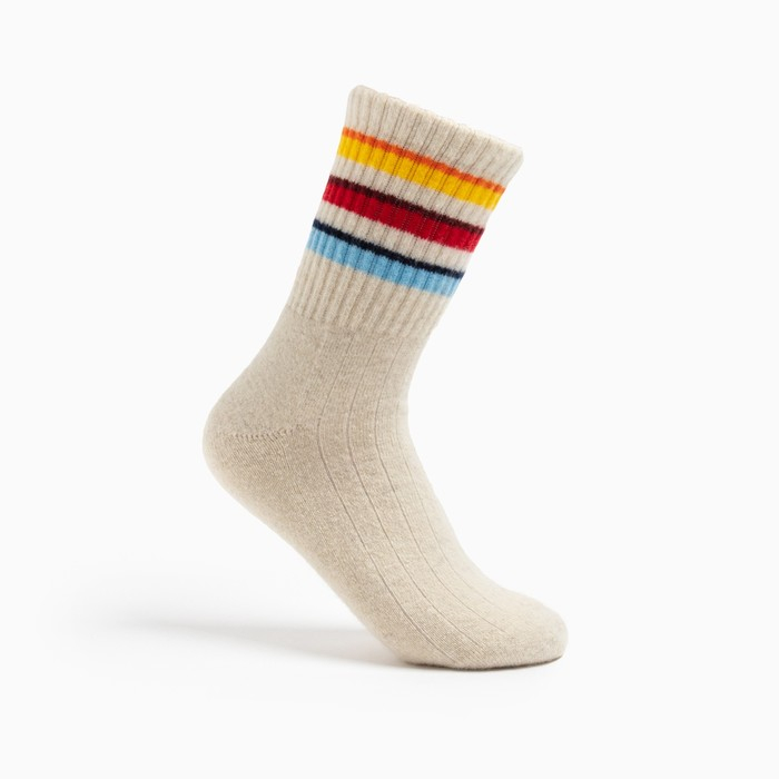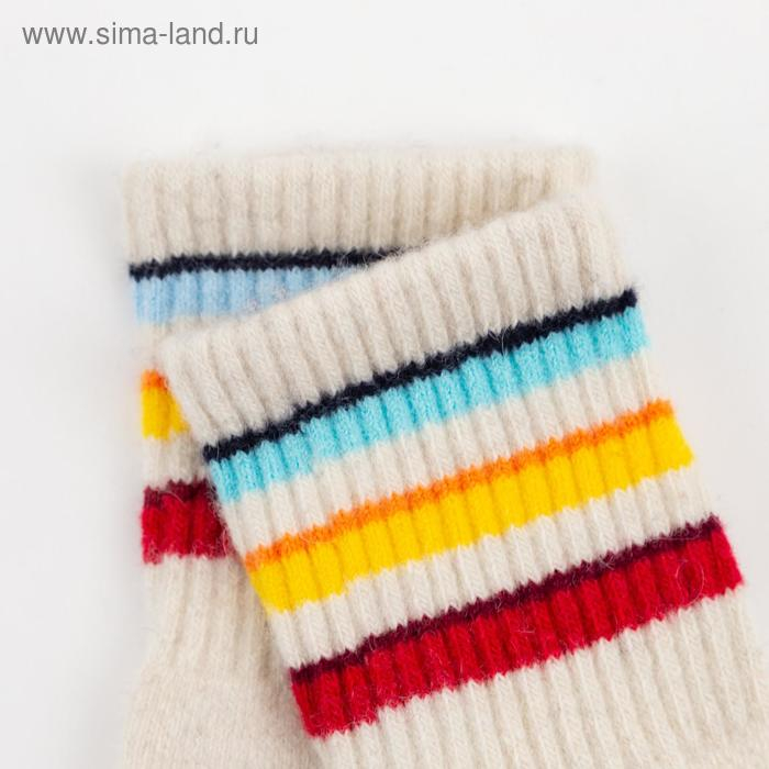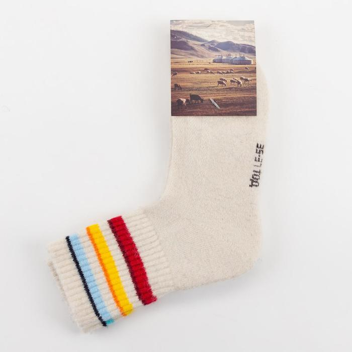 Носки женские из монгольской шерсти "Цветные полосы" цвет белый, размер 23 (34-36)