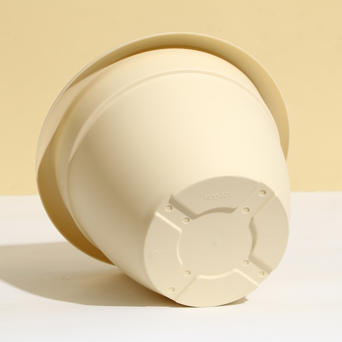 Горшок для цветов, d = 25 см, 4,3 л, пластик, светло-бежевый