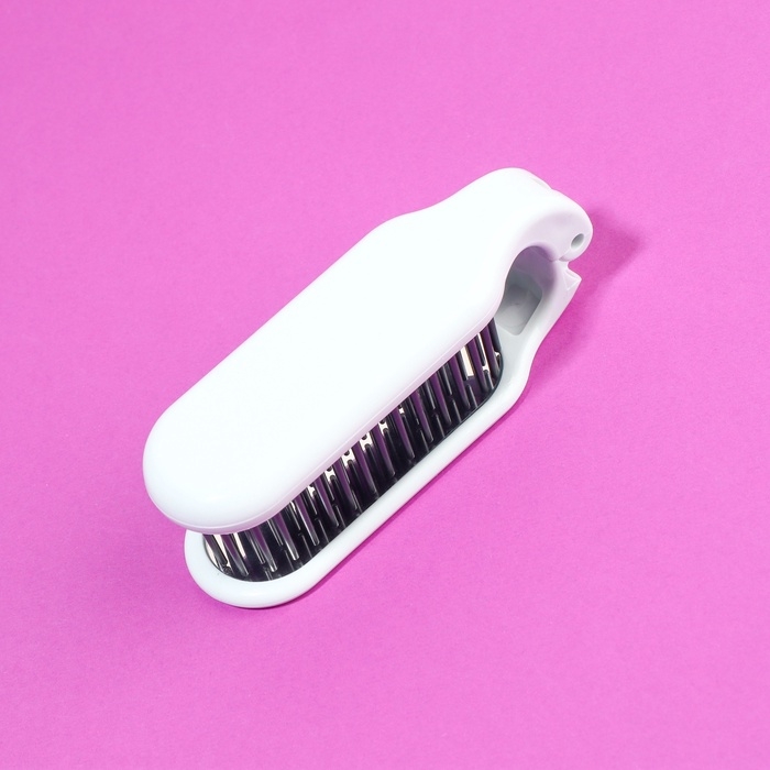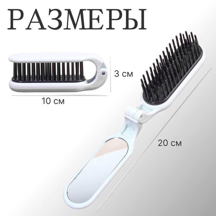Расчёска массажная, складная, с зеркалом, 3 × 10 см, цвет белый