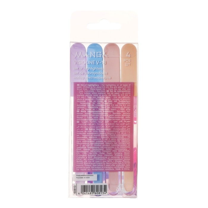 Набор маркеров текстовыделителей 4 штуки ErichKrause Visioline V-18 "Manga", скошенный узел 0,5 - 4,5 мм, на водной основе быстро высыхает, микс