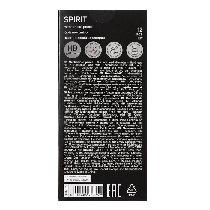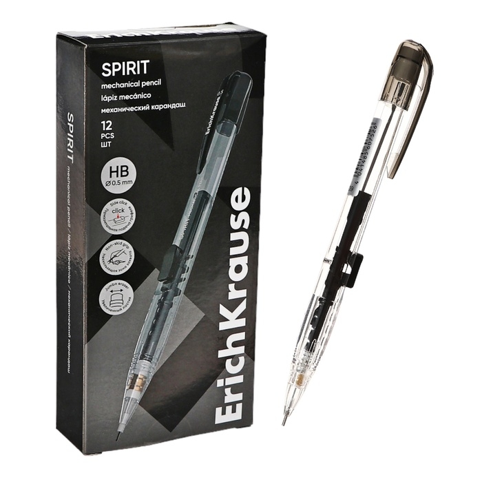 Карандаш механический 0,5 мм ErichKrause "Spirit" НВ, с ластиком, нескользящая зона захвата, горизонтальная подача грифеля