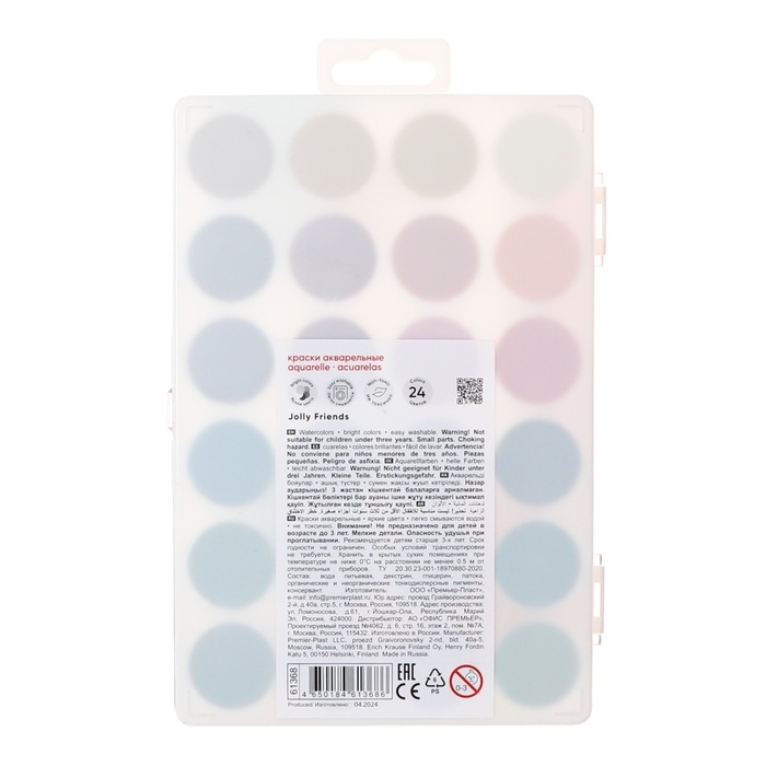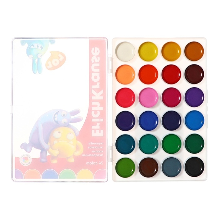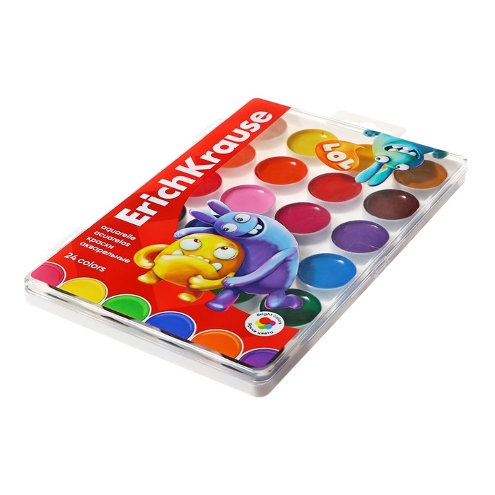 Акварель 24 цвета ErichKrause "Jolly Friends", медовые, УФ-фильтр, матовые насыщенные цвета, пластиковая коробка с европодвесом
