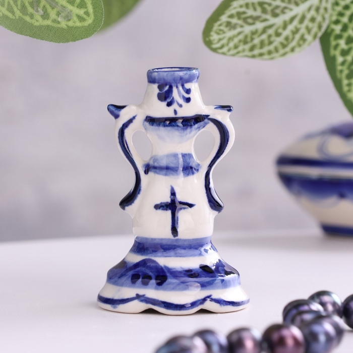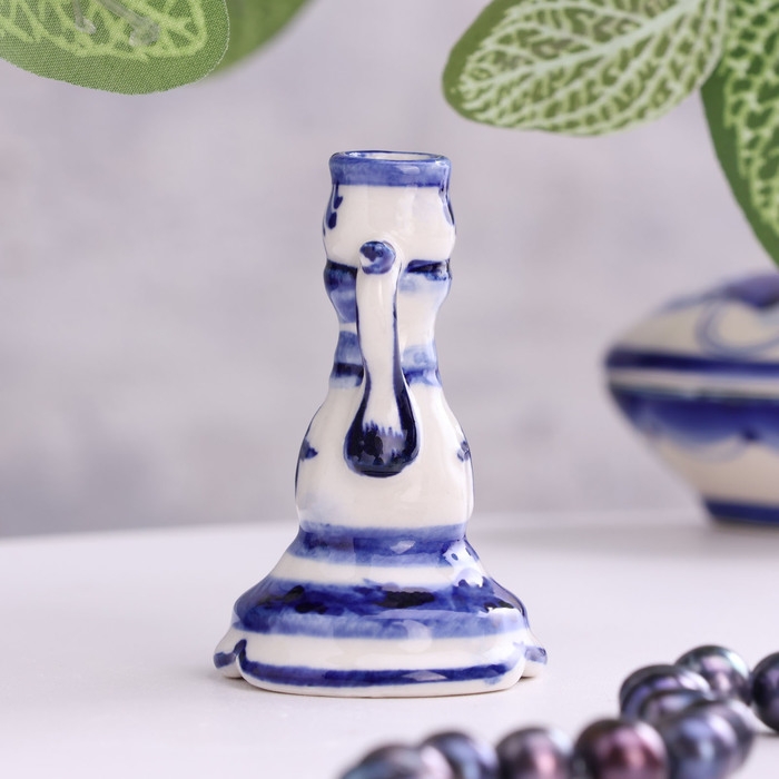 Подсвечник гжель «Надежда» бело-синий, керамика,