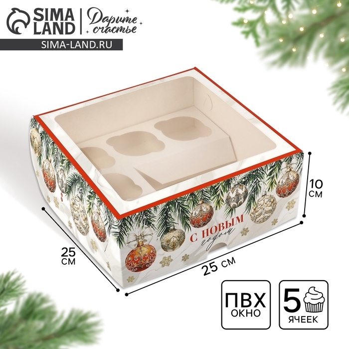 Коробка для капкейков и бенто-торта «С Новым годом!», шары, 25 х 25 х 10 см