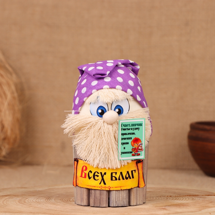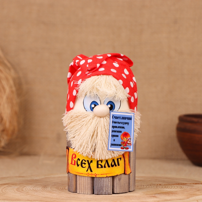 Домовой Счастливчик "Всех Благ", на бочке, 14х8х8 см