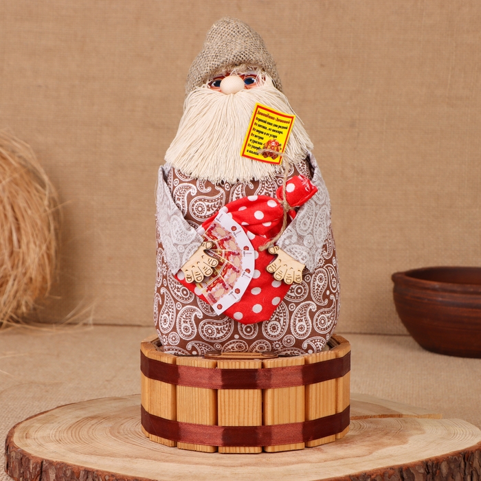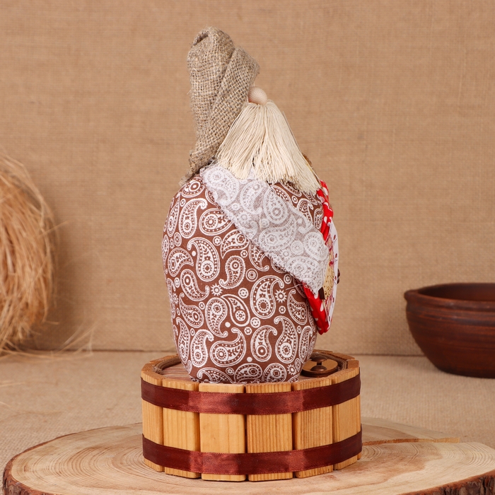 Домовой-копилка "Афанасий с мешком", на бочке, 28х15х12 см