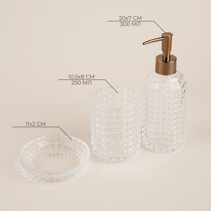 Аксессуары для ванной SL Home, 3 предмета: дозатор, мыльница, стакан