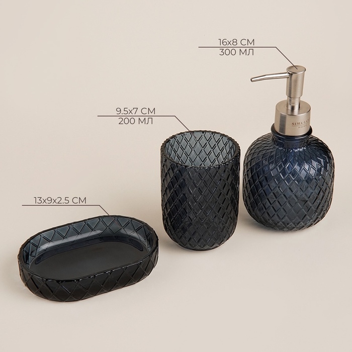 Аксессуары для ванной SL Home, 3 предмета: дозатор, мыльница, стакан