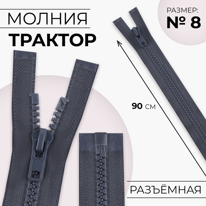 Молния «Трактор», №8, разъёмная, замок автомат, 100 см, цвет тёмно-серый, цена за 1 штуку