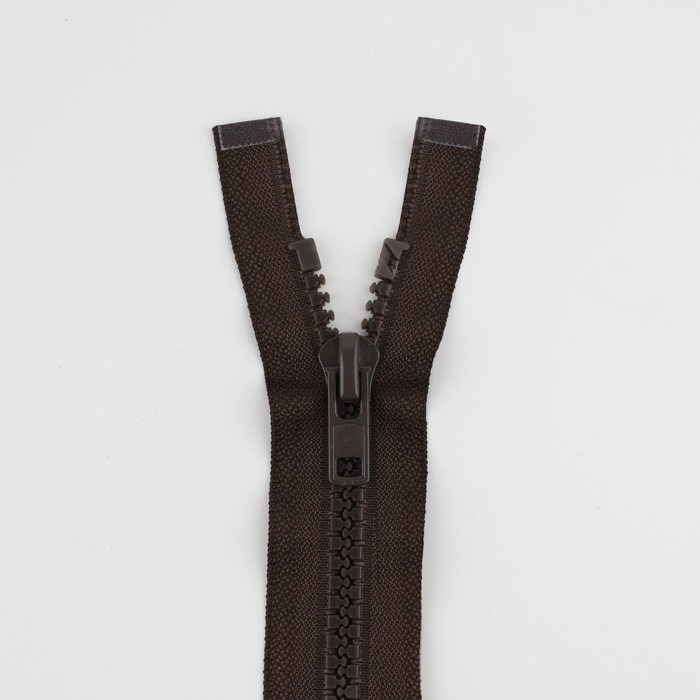 Бегунок плавно скользит по застёжке. Данная молния является неразъёмной, тесьма в нижней части закреплена. Номер молнии обозначает ширину зубчиков в миллиметрах.
