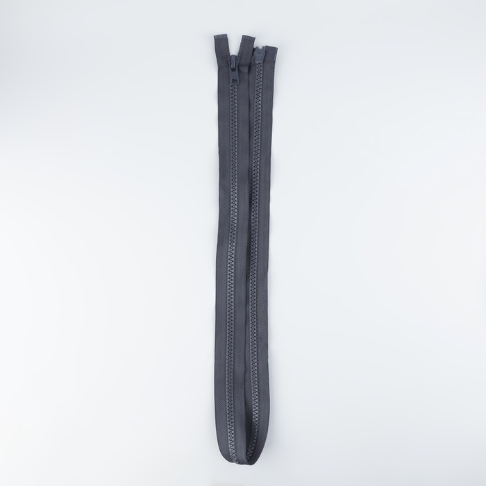 Данная молния имеет два замка на противоположных сторонах. Номер молнии обозначает ширину зубчиков в миллиметрах. Чаще всего такая застёжка используется для длинных изделий, например, пуховиков, спортивных сумок, кардиганов и т.п.