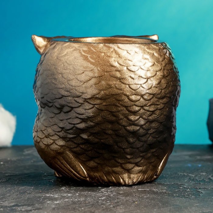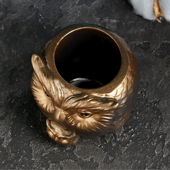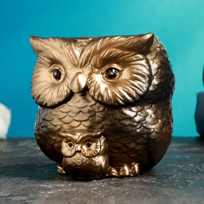 Кашпо фигурное "Сова с совенком" бронзовое, 9см