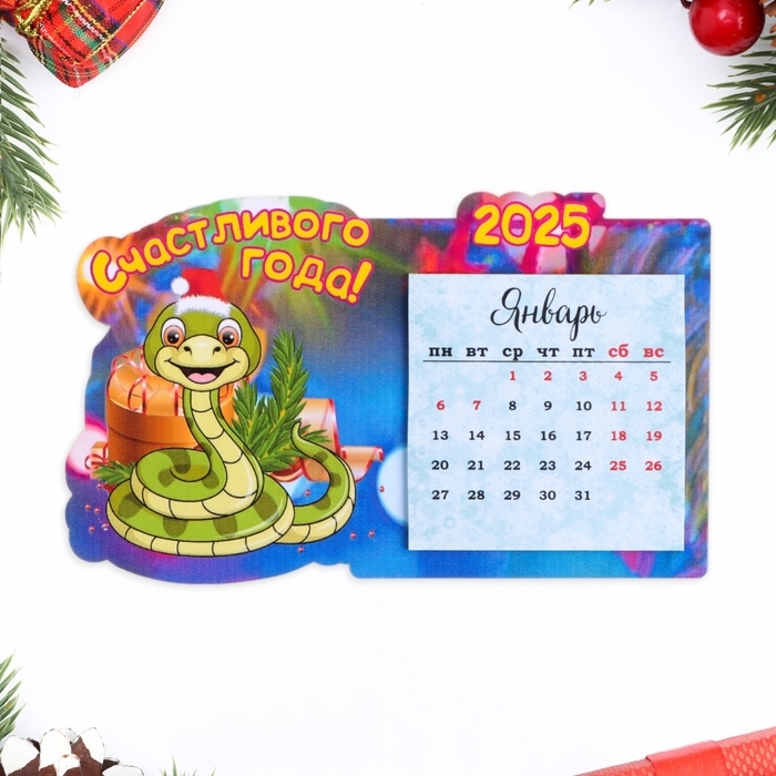 Магнит новогодний, змея, с календарем "Счастливого Года!" символ года, подарок