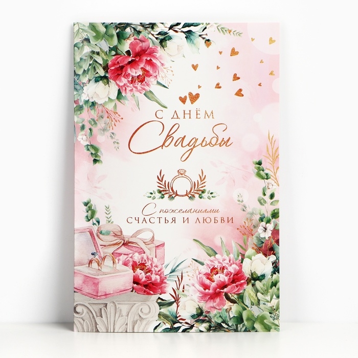 Открытка поздравительная «С днём свадьбы!» 19 х 29 см