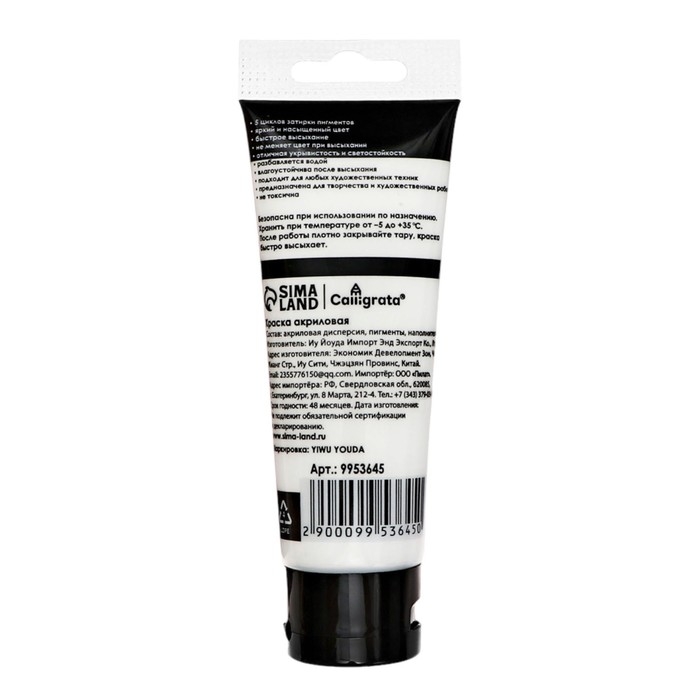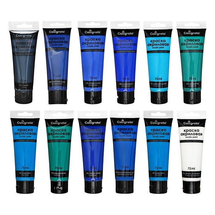 Краски акриловые 12 цветов, в тубе 75 мл, матовые, CALLIGRATA, Морские цвета