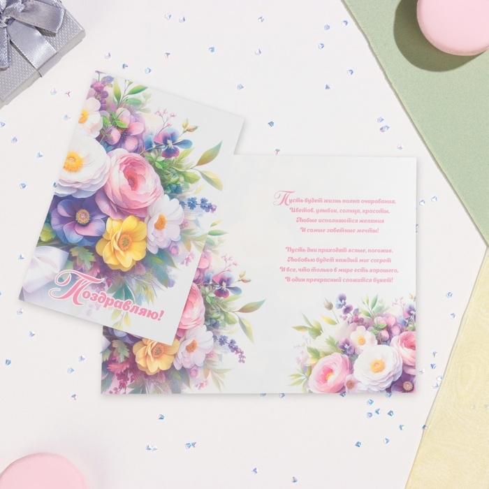 Открытка "Поздравляем!" букет, 19 х 29 см