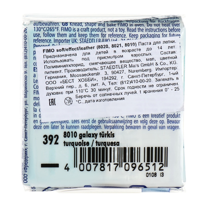 Пластика-полимерная глина запекаемая 57г FIMO effect галактический бирюзовый 8010-392
