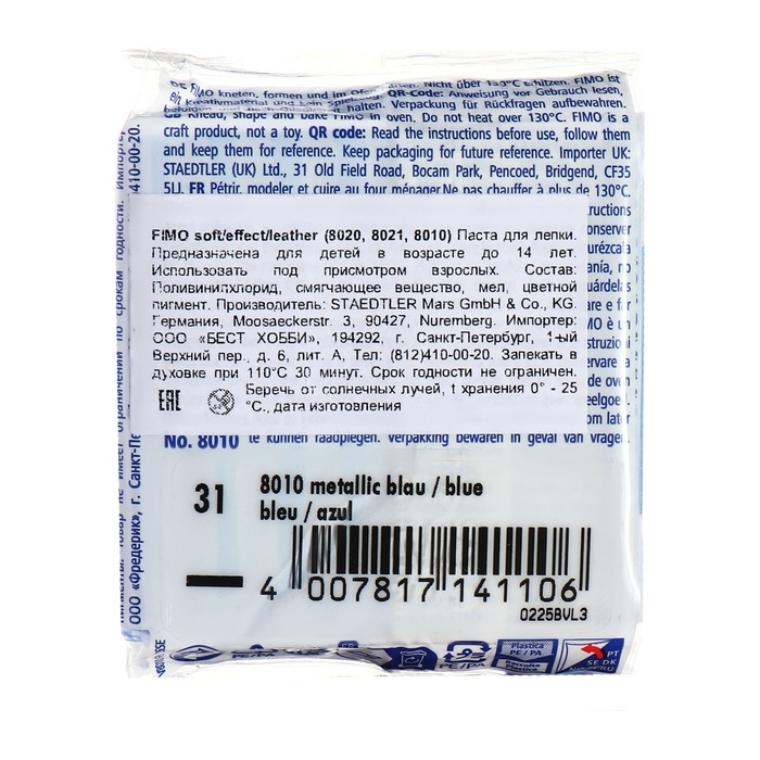 Пластика-полимерная глина запекаемая 57г FIMO effect синий металлик 8010-31