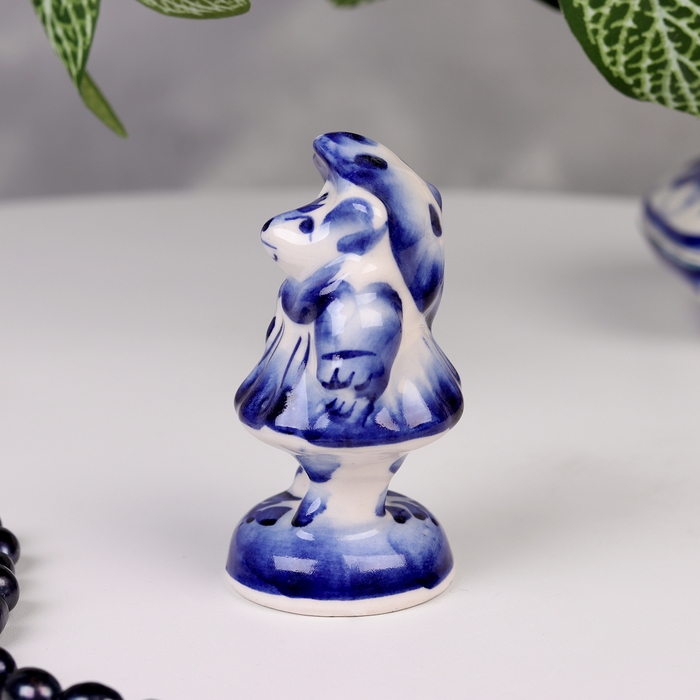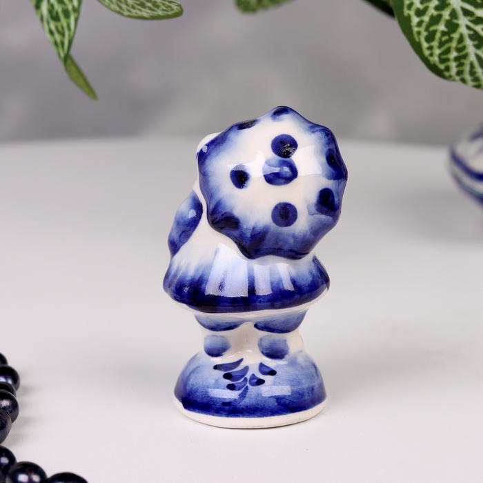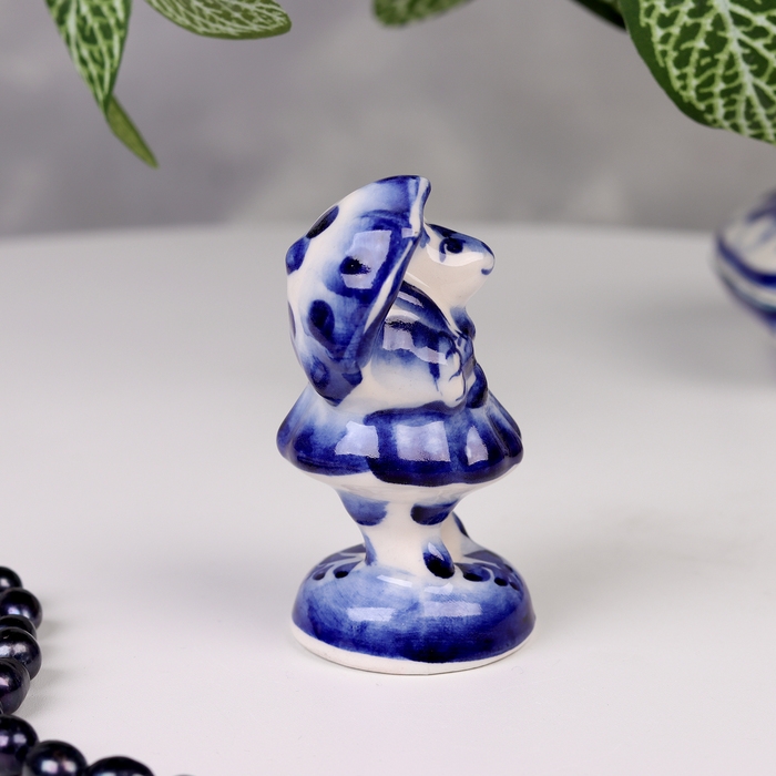Сувенир гжель «Мышь с зонтом», бело-синий,керамика,