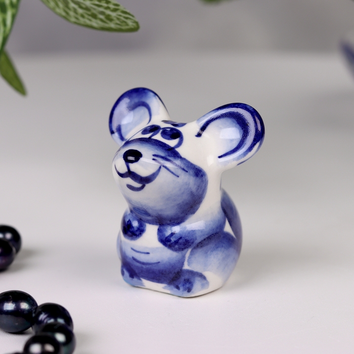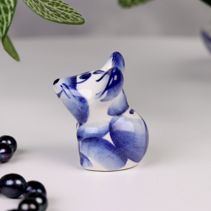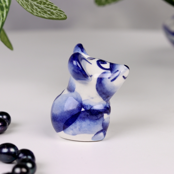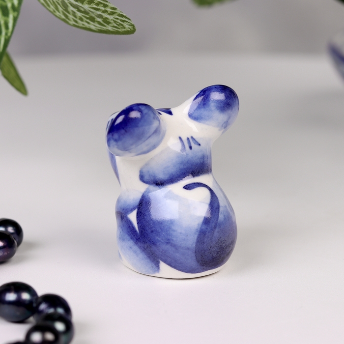 Сувенир гжель «Мышка», бело-синий,керамика, малая,