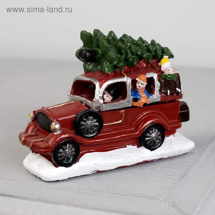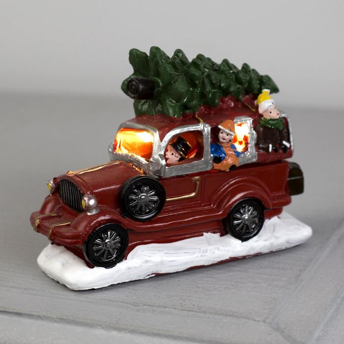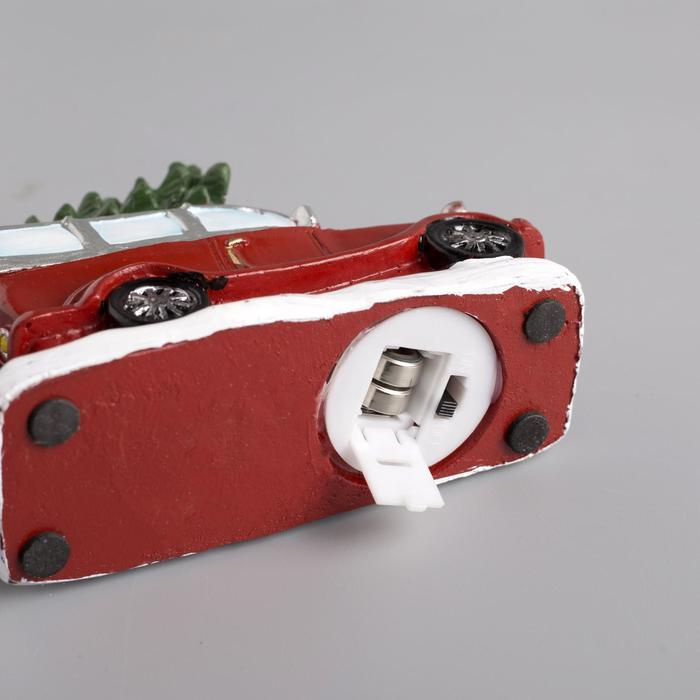 Светодиодная фигура «Автомобиль с ёлкой», керамика, батарейки AG10х3 ( в комплекте), свечение тёплое белое