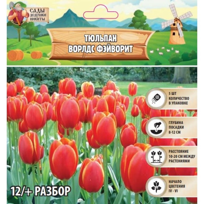 Тюльпан Ворлдс Фэйворит, р-р 12/+, 5шт, Осень 2024