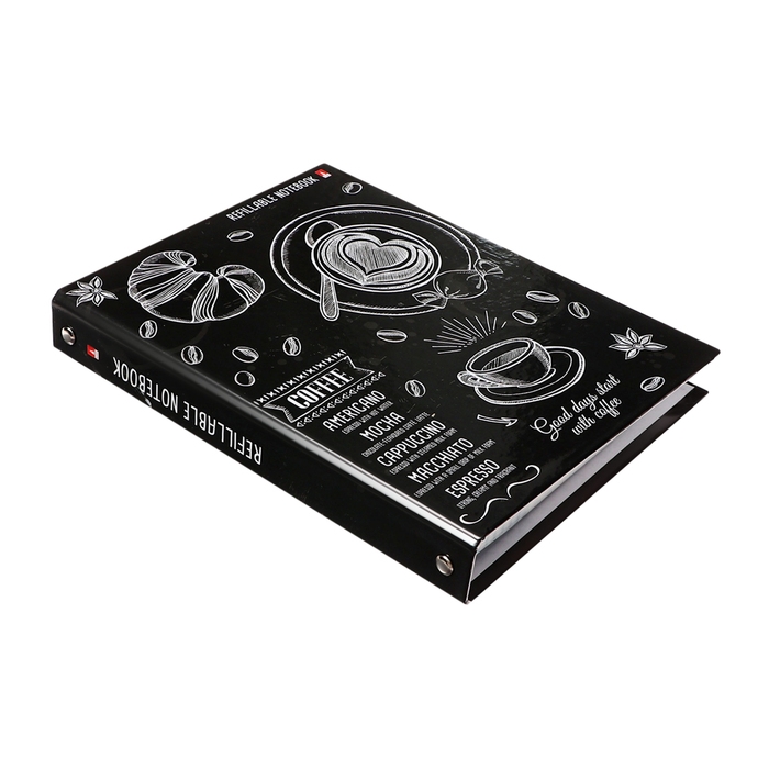 Тетрадь на кольцах 80 листов в клетку CAFFEE NERO, со смен блоком, твердая обложка, глянцевое ламинирование, блок 60 г/м2