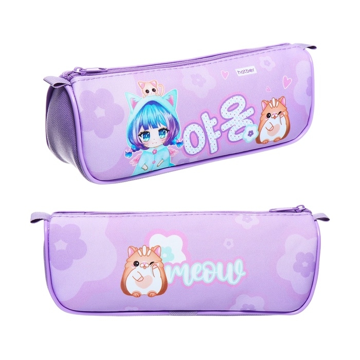 Пенал мягкий, 1 отделение, 60 х 200 х 50 мм, объёмный, Hatber "Девочка-кошка"