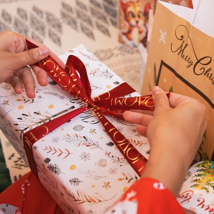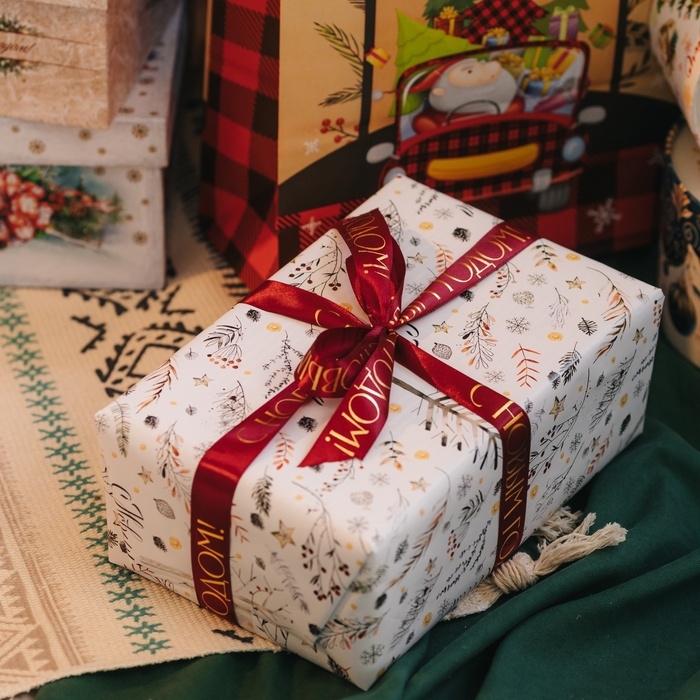 Новогодняя лента является универсальным помощником при изготовлении рукоделий, украшении интерьера, упаковке подарков и другого.
