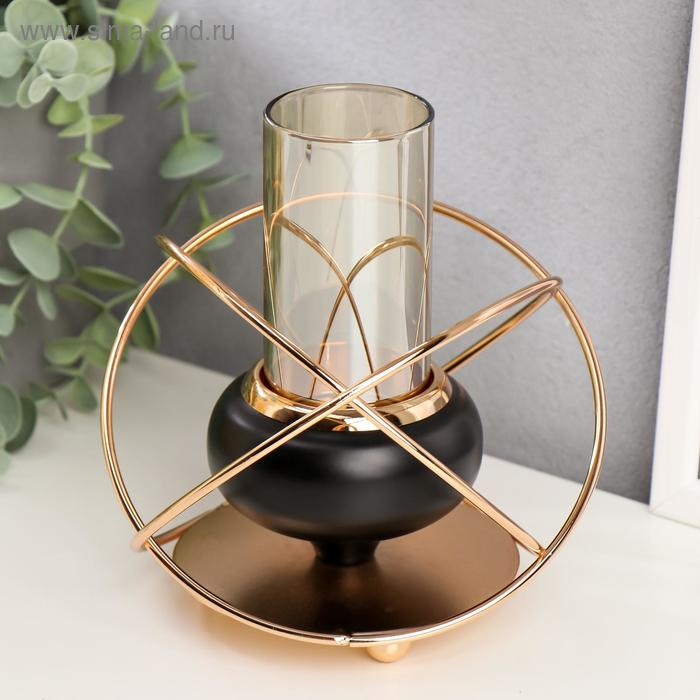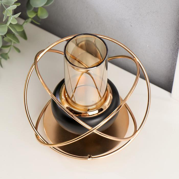 Подсвечник металл, стекло на 1 свечу "Сфера" чёрный с золотом 16,5х14,5х14,5 см