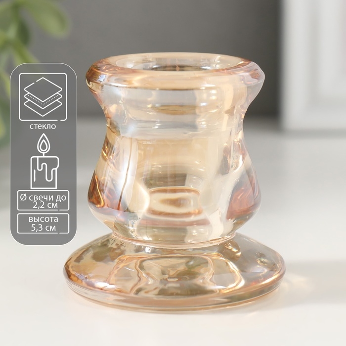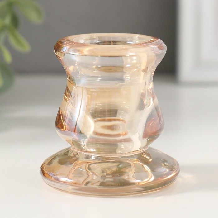 Подсвечник стекло на 1 свечу "Лучано" d=2,2 см прозрачный карамель 5,5х5,2х5,3 см