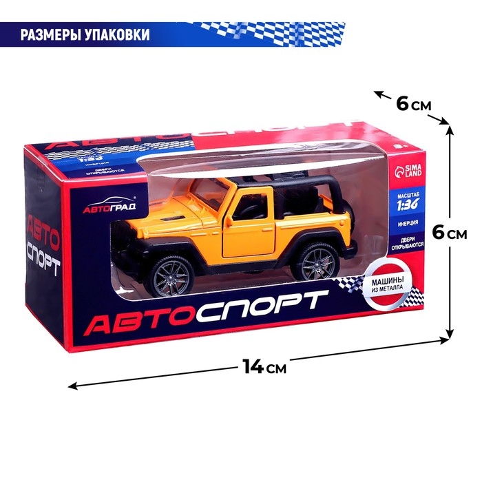 Машина металлическая «Джип», инерционная, 1:36, открываются двери, цвет оранжевый
