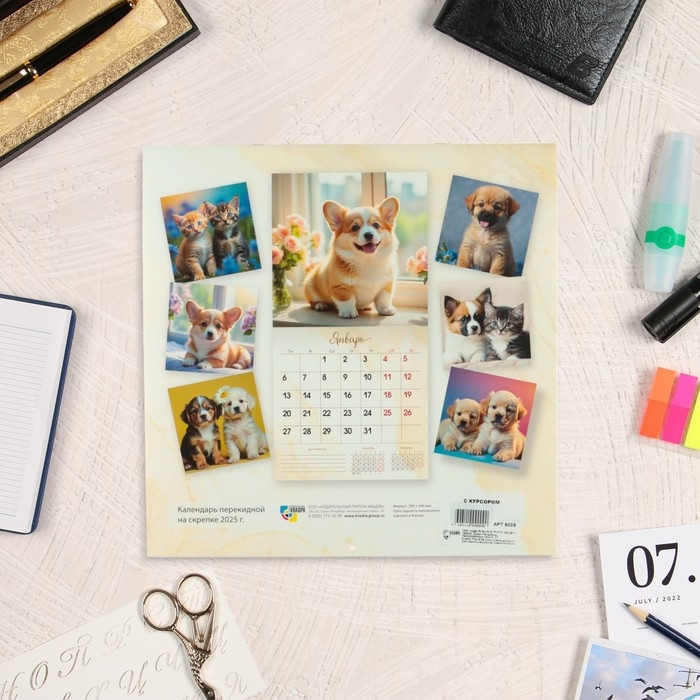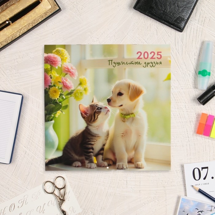 Календарь перекидной на скрепке "Пушистые друзья" с курсором, 2025 год, 29 х 29 см