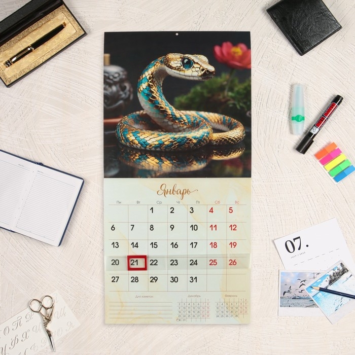 Календарь перекидной на скрепке "Символ года - 4" с курсором, 2025 год, 29 х 29 см