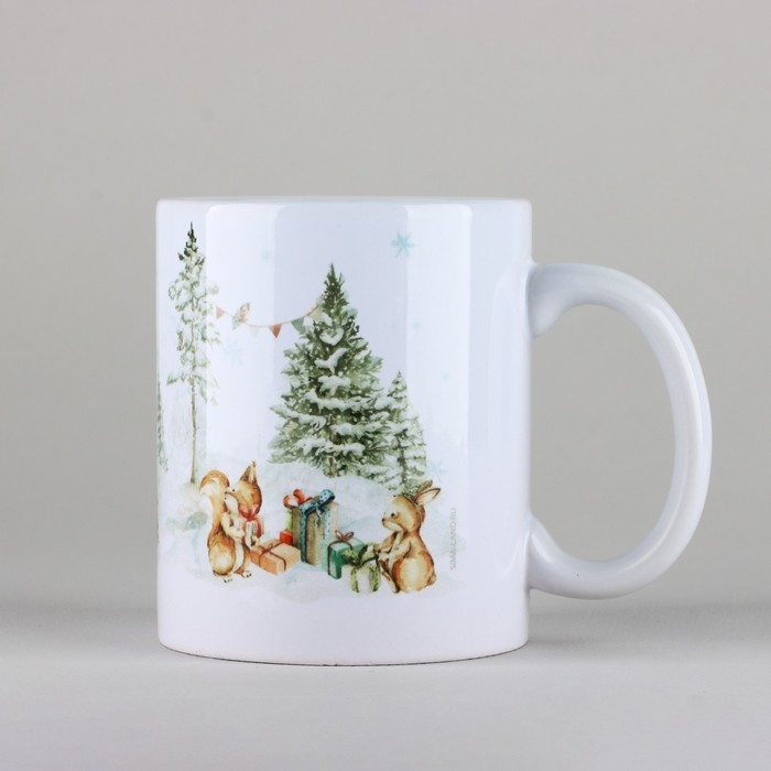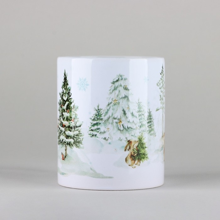 Кружка новогодняя керамическая «Новогодний лес», 320 мл, цвет белый