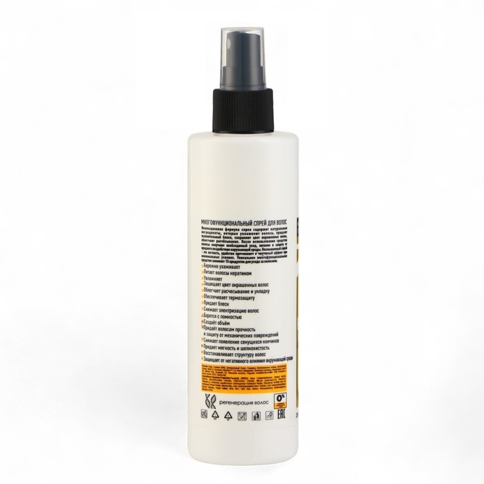 Многофункциональный спрей 15 в 1 для ухода для всех типов волос. Средство обладает отличными свойствами: великолепно увлажняет и питает волосы, облегчает расчесывание, восстанавливает повреждения. Подходит для ежедневного пользования. Кератин, входящий в состав спрея, дает силу волосам, укрепляет их структуру. Это незаменимый продукт для ухода за волосами в домашних условиях.